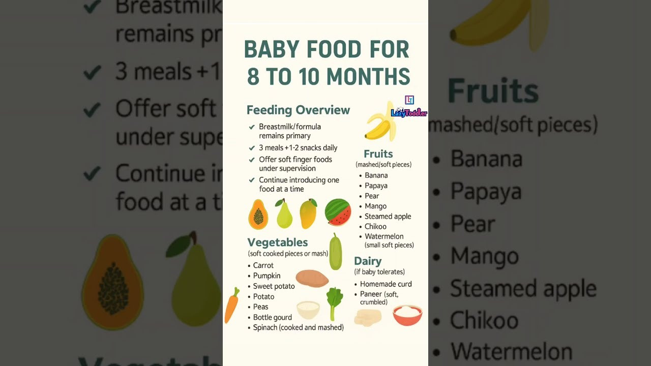 - Usia 9-11 bulan: 3 kali sehari, dengan porsi yang lebih besar (hingga 1/2 cangkir).